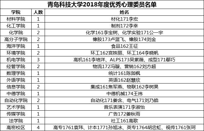 伟德国际1949官网2018年度优秀心理委员、优秀心理社团公示