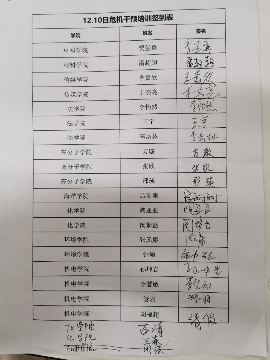 12.10日危机干预培训辅导员出勤情况