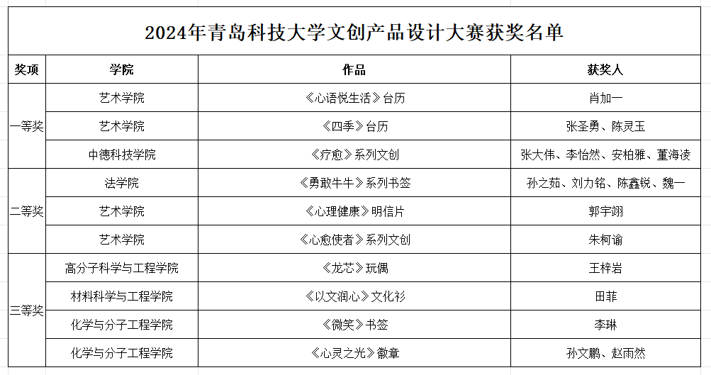 根据《关于举办2024年心理健康教育与咨询中心文创产品设计大赛的通知》要求,经学院(校区)自主提报、资格审核、学校评审,现将获奖名单予以公示,公示时间为7月8日至7月12日。