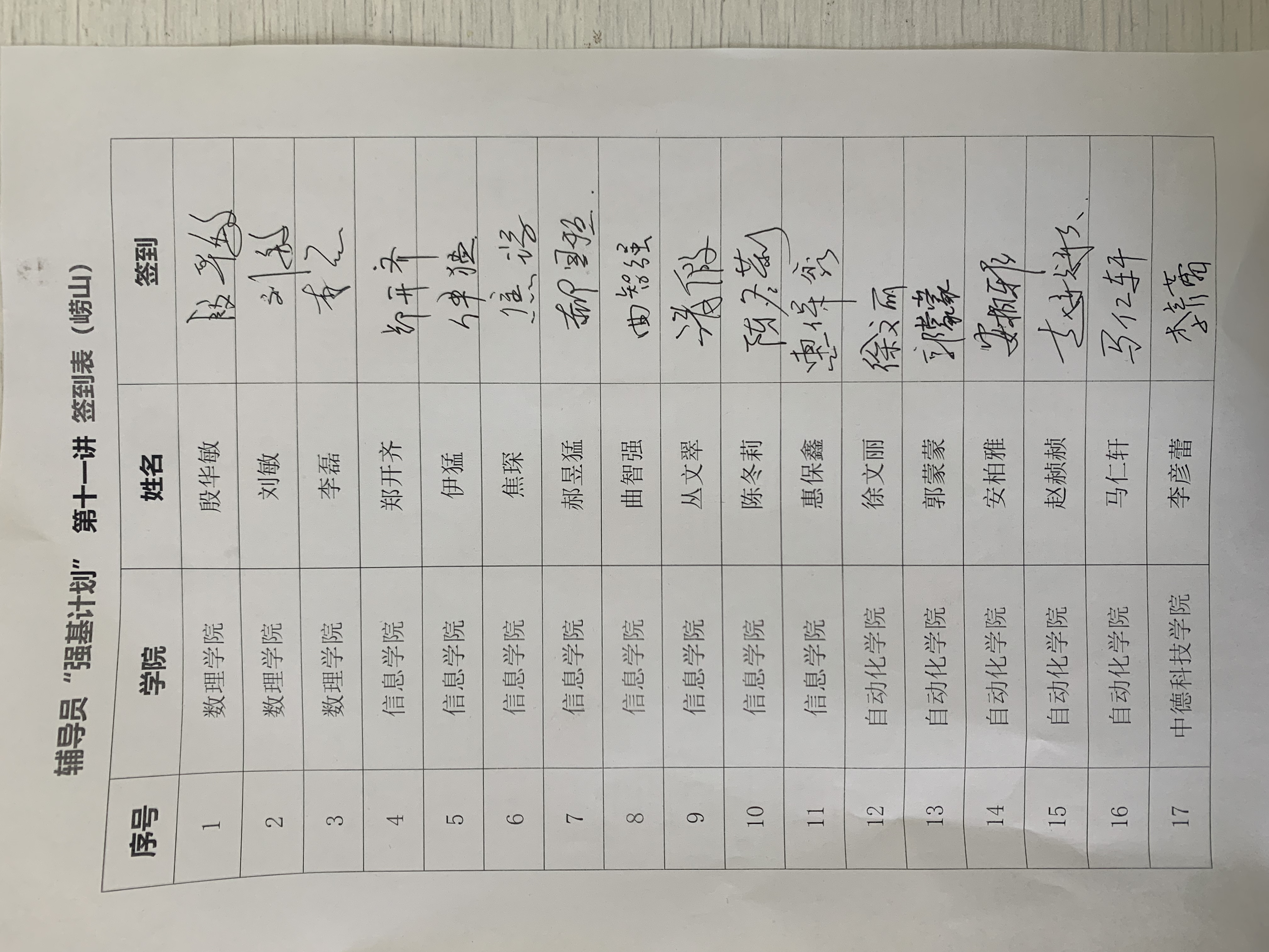 关于辅导员“强基计划”培训第十一讲出勤情况公示