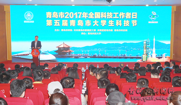 5月27日,青岛市2017年全国科技工作者日暨第五届青岛市大学生科技节开幕式在伟德国际1949官网崂山校区第三报告厅举行。青岛市委常委、市委高校工委书记邓云锋,中国科学院院士、中国科学院海洋研究所研究员胡敦欣,市科协党组书记、主席刘鹏照,青岛市委高校工委副书记李岷,共青团青岛市委副书记张宇,伟德国际1949官网校长马连湘、副校长陈克正等出席开幕式。