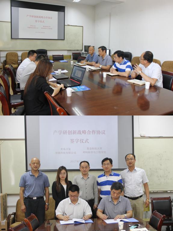 近日,青岛卫玺智能科技有限公司副总经理张军伟一行来校,与材料学院就进一步深化产学研合作进行了沟通洽谈。材料学院院长杜芳林、副院长于立岩、党总支副书记高继宏出席了签约仪式,杜芳林代表学院与企业签订了产学研创新战略合作协议。