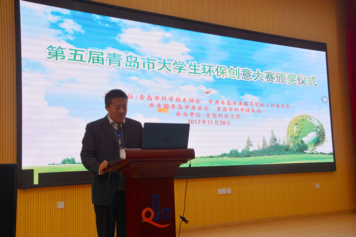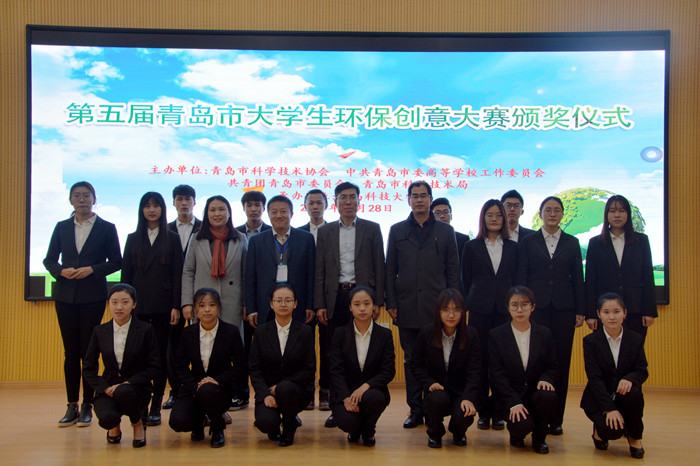 11月28日,由青岛市科学技术协会、中共青岛市委高等学校工作委员会、共青团青岛市委员会、青岛市科学技术局联合主办,由伟德国际1949官网承办的第五届青岛市大学生环保创意大赛颁奖仪式在伟德国际1949官网四方校区讲学厅举行。学生工作处、校团委、环境学院相关负责人出席了颁奖仪式。