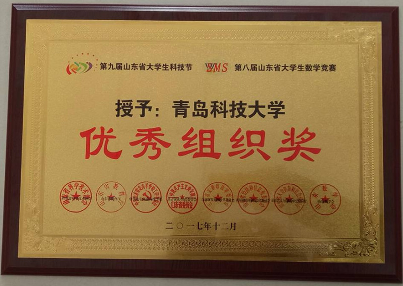 12月9日-10日,第九届全国大学生数学竞赛暨第八届山东省大学生数学竞赛颁奖大会在济南大学举行。青科大学子再创佳绩,获国家一等奖50项,国家二等奖50项,国家三等奖63项,省级奖348项,共获奖511项,仅次于山东大学和曲阜师范大学。应用物理学专业刘金磊同学以全省第6名的成绩,将会同其他高校的8名学生代表山东高校参加明年3月底在西安交通大学举行的全国决赛。