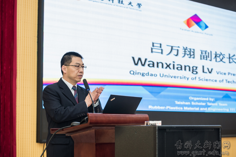 吕万翔在致辞中表示,2018泰山学术论坛—可持续发展高分子材料专题暨橡塑材料与工程学科创新引智基地“111基地”学术研讨会是共商发展共享、共话科技未来的难得机遇和优质平台。他简要介绍了学校的基本情况及橡塑材料与工程学科创新引智基地的建设情况,并对此次会议的内容作了说明。