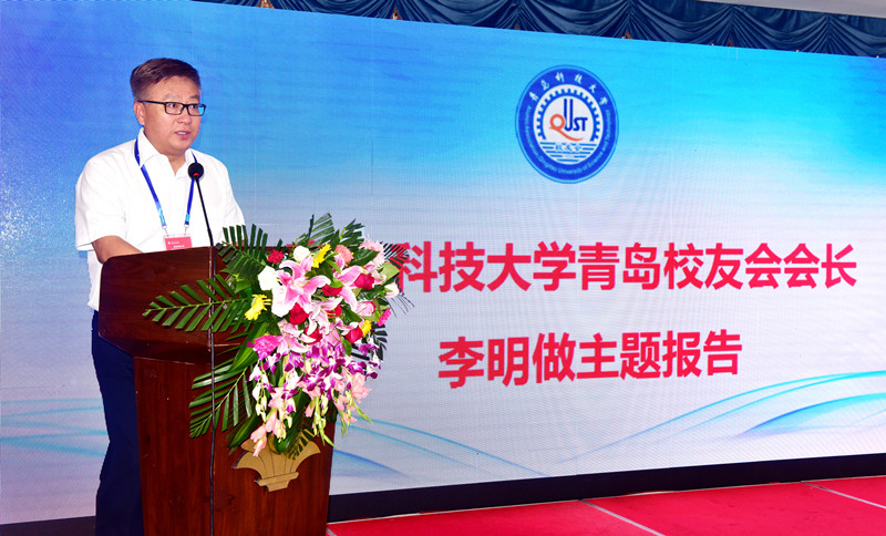 青岛校友会会长、海湾集团董事长李明代表青岛校友会欢迎各位代表的到来,并作了大会主题报告。