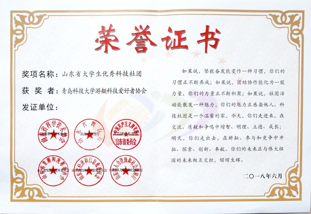 青科大游艇科技爱好者协会获评“山东省优秀大学生科技社团”