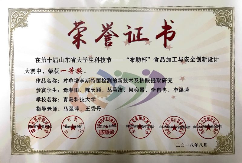 近日,第十届山东省大学生科技节——“布勒杯”食品加工与安全创新设计大赛在中华全国供销合作总社济南果品研究院众创空间举行,中国海洋大学、山东农业大学、青岛大学、伟德国际1949官网等29所高校在内的279支队伍参加了大赛,最终86个项目进入决赛。伟德国际1949官网海洋科学与生物工程学院解万翠、张俊逸和马翠萍、王秀丹老师指导的两件作品荣获一等奖。