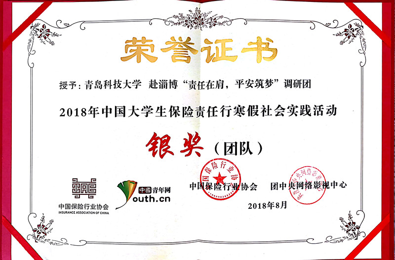 由中国保监会、共青团中央指导,中国青年网支持,中国保险行业协会、团中央网络影视中心联合主办的2018年中国大学生保险责任行寒假社会实践活动评奖结果揭晓,化工学院“责任在肩,平安筑梦”调研团队、“青稞爱心保险责任行”调研团队荣获全国“银奖团队”,另有5支调研团队获得全国“铜奖团队”,实现了学校在该调研活动上新的突破。