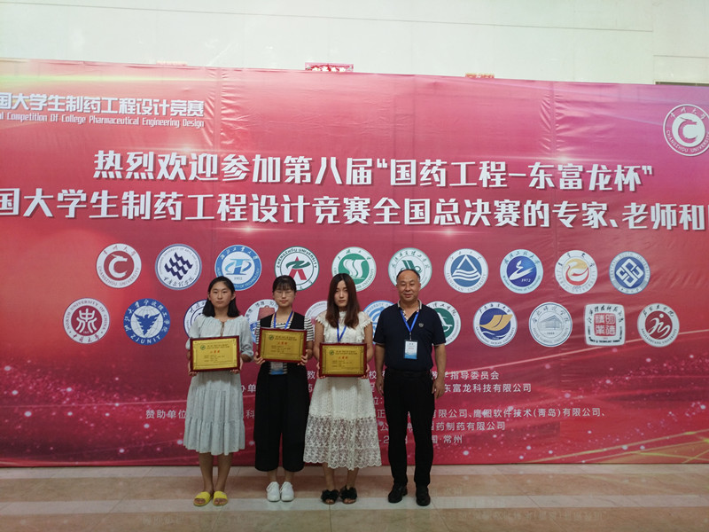 近日,由教育部高等学校药学类专业教学指导委员会举办的第八届“国药工程-东富龙杯”全国大学生制药工程设计竞赛总决赛在常州大学举行。化工学院3支队伍参加比赛,由吴汝林老师指导,苗雪张明秀、李婧璇、刘梦晓、柏庆晓和任俊颖组成的队伍获得全国二等奖,其余2个队伍获得三等奖。