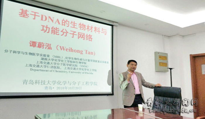 10月19日,中国科学院院士、湖南大学副校长谭蔚泓教授来校作“基于DNA的生物材料与功能分子网络”的学术报告。报告由化学与分子工程学院院长罗细亮教授主持。
