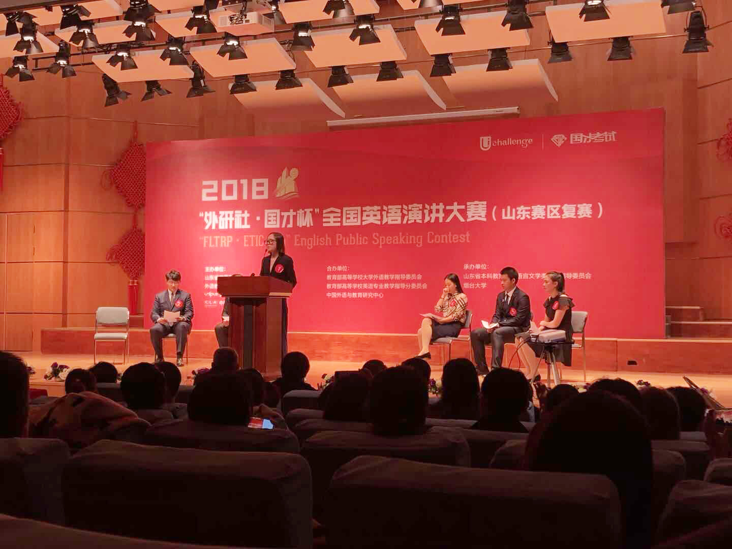 11月2日至4日,2018年“外研社杯”全国英语演讲大赛山东省赛在烟台大学举行。伟德官网经管学院2015级学生蒋嘉颖代表学校参加了本次比赛并获得一等奖,外国语学院刘艳艳老师获优秀指导教师称号。