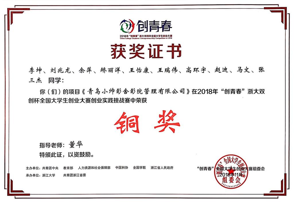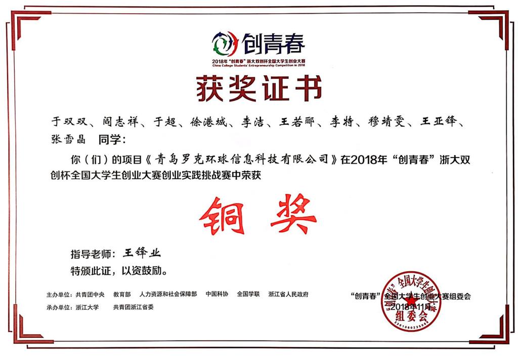 11月3日,“创青春”浙大双创杯全国大学生创业大赛在浙江大学落下帷幕。伟德官网推送的作品《青岛罗克环球信息科技有限公司》和《青岛小帅影舍影院管理有限公司》获得创业实践挑战赛铜奖。本次大赛由共青团中央、教育部、人力资源社会保障部、中国科协、全国学联、浙江省人民政府主办,浙江大学、共青团浙江省委承办。