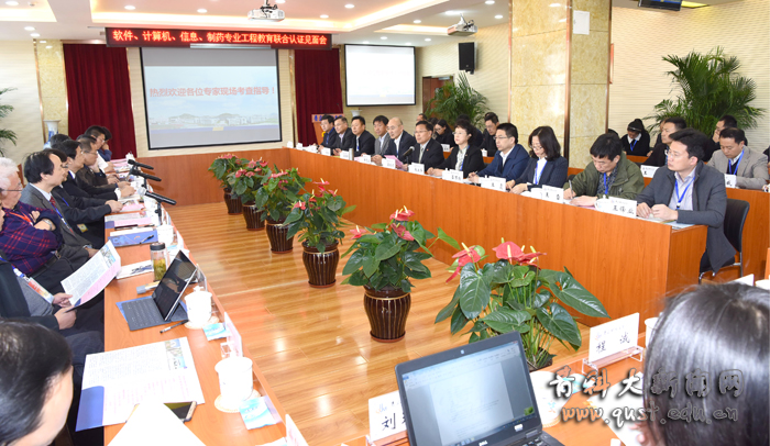 见面会上,李庆领代表学校对联合认证专家组的到来表示热烈欢迎,介绍了学校的基本概况和办学特色。联合认证专家组组长李志义教授对工程教育专业认证的背景、目的、意义等做了简要介绍,说明了此次专业认证现场考查的目的。软件工程、计算机科学与技术、信息工程、制药工程专业负责人分别向专家组汇报了各专业的建设情况。专家组围绕专业认证自评报告,分别向相关学院和专业负责人及学校职能部门有关人员进行了提问。