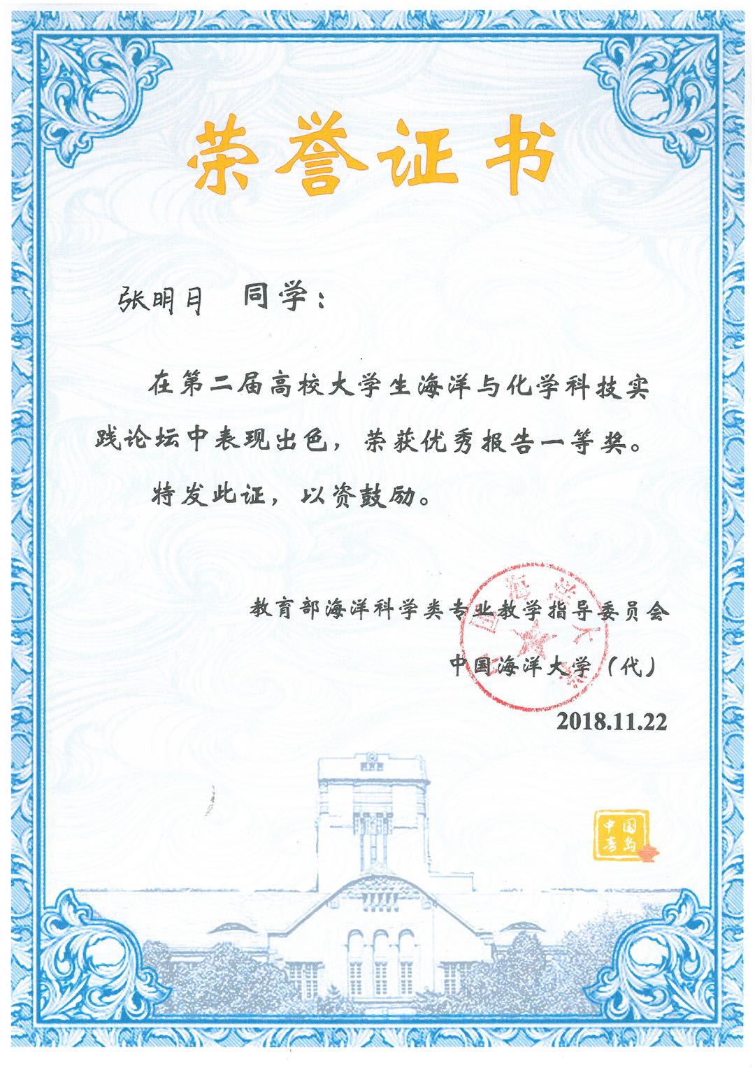海洋学院获第二届高校大学生海洋与化学科技实践论坛优秀报告一等奖