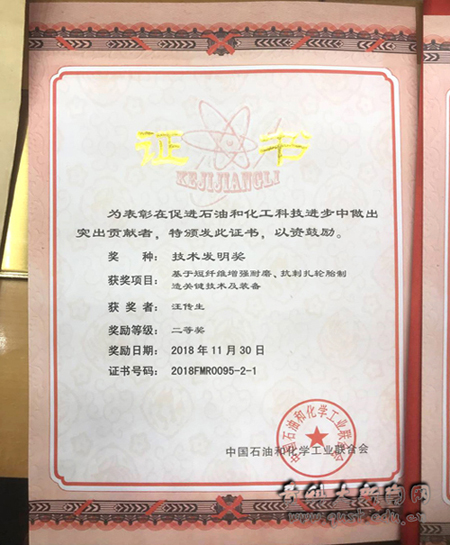 工程学部主任汪传生的《基于短纤维增强耐磨、抗刺扎轮胎制造关键技术及装备》项目获得技术发明二等奖、《废橡胶废塑料裂解油化成套生产装备标准应用》项目获得科技进步三等奖,机电工程学院院长何燕荣获青年科技突出贡献奖,高分子材料加工机械系主任林广义的《橡胶三维混合均衡挤出成型定型关键技术及设备》项目获得科技进步三等奖,林广义、中德科技学院李镇江、化工学院朱兆友三人获得“2018年度全国石油和化工行业优秀科技工作者”荣誉称号。