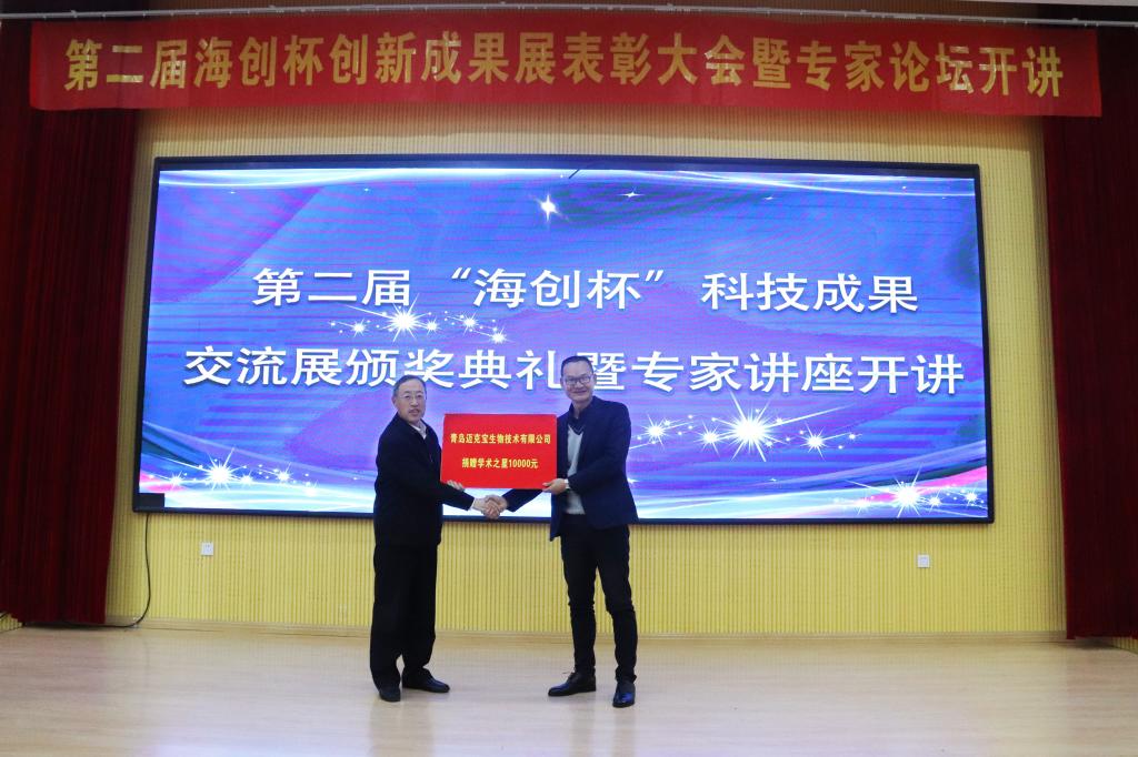 会上,青科大校友、青岛迈克宝生物技术公司经理王可为海洋学院“海创基金”捐款10000元,并为焉春雨等10名同学颁发“学术之星”奖杯及1000元奖金,肖强、海洋学院院长陈夫山分别为王可、褚庆柱颁发海洋学院创新创业指导老师聘书。