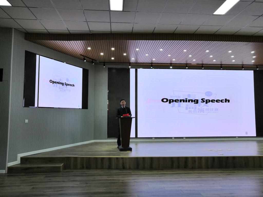 尹洪山在开幕式上致辞,对驻青高校老师同学们的到来表示欢迎,他指出,随着全球化的迅猛发展,学好英语就如同打开了一扇通往世界的大门,英语能力已经成为大学生必备的技能之一。希望参赛选手充满自信,赛出风采,赛出水平;希望各位评委认真履职,公平公正,预祝演讲大赛圆满成功。