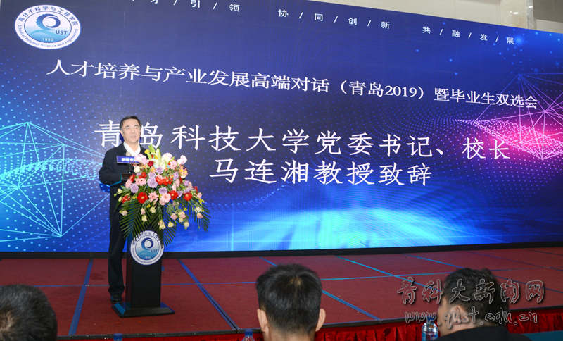 “职橡未来”毕业生双选会在青岛汉卓酒店举行,党委书记、校长马连湘出席开幕式并致辞,校办、学生处、高分子学院负责人以及企业、毕业生代表参加了开幕式。开幕式由高分子学院党总支书记孙洪广主持。