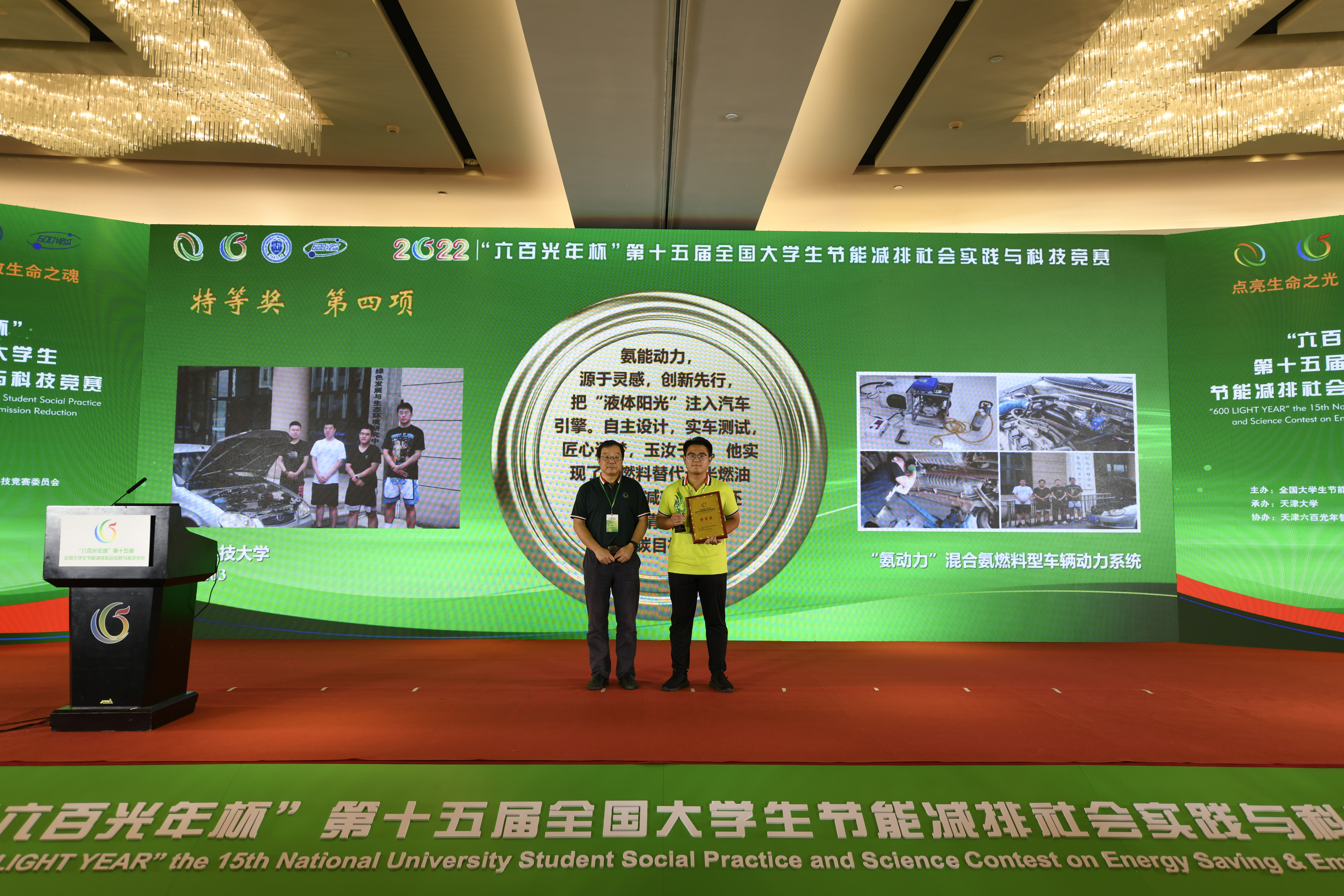 本届大赛以“节能减排,绿色能源”为主题,共有623所高校报名参加,其中境外高校13所。境内高校提交有效作品6218件,参赛人数46139人次。经大赛组委会评审,最终来自华中科技大学、西安交通大学、伟德国际1949官网等高校的10件作品获特等奖,评选出一等奖138件、二等奖227件。机电工程学院张斌老师指导的《“氨动力”混合氨燃料型车辆动力系统》获大赛特等奖;王飞老师指导的《“诱变蓄热”——一种实现水合物法捕碳制氢中废热利用的Ca2CO3@Tet相变微胶囊》获大赛一等奖、《基于狭管效应的小型风光一体化发电装置》及《3D  RECYCLE——3D打印废料回收重塑机械》获大赛二等奖。