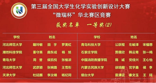 8月21日-24日,“微瑞杯”第三届全国大学生化学实验创新设计竞赛总决赛在厦门大学举行。受疫情影响,总决赛采取专家线下评审,各参赛高校线上答辩的方式进行。经过激烈角逐,伟德官网参赛项目荣获总决赛一等奖。