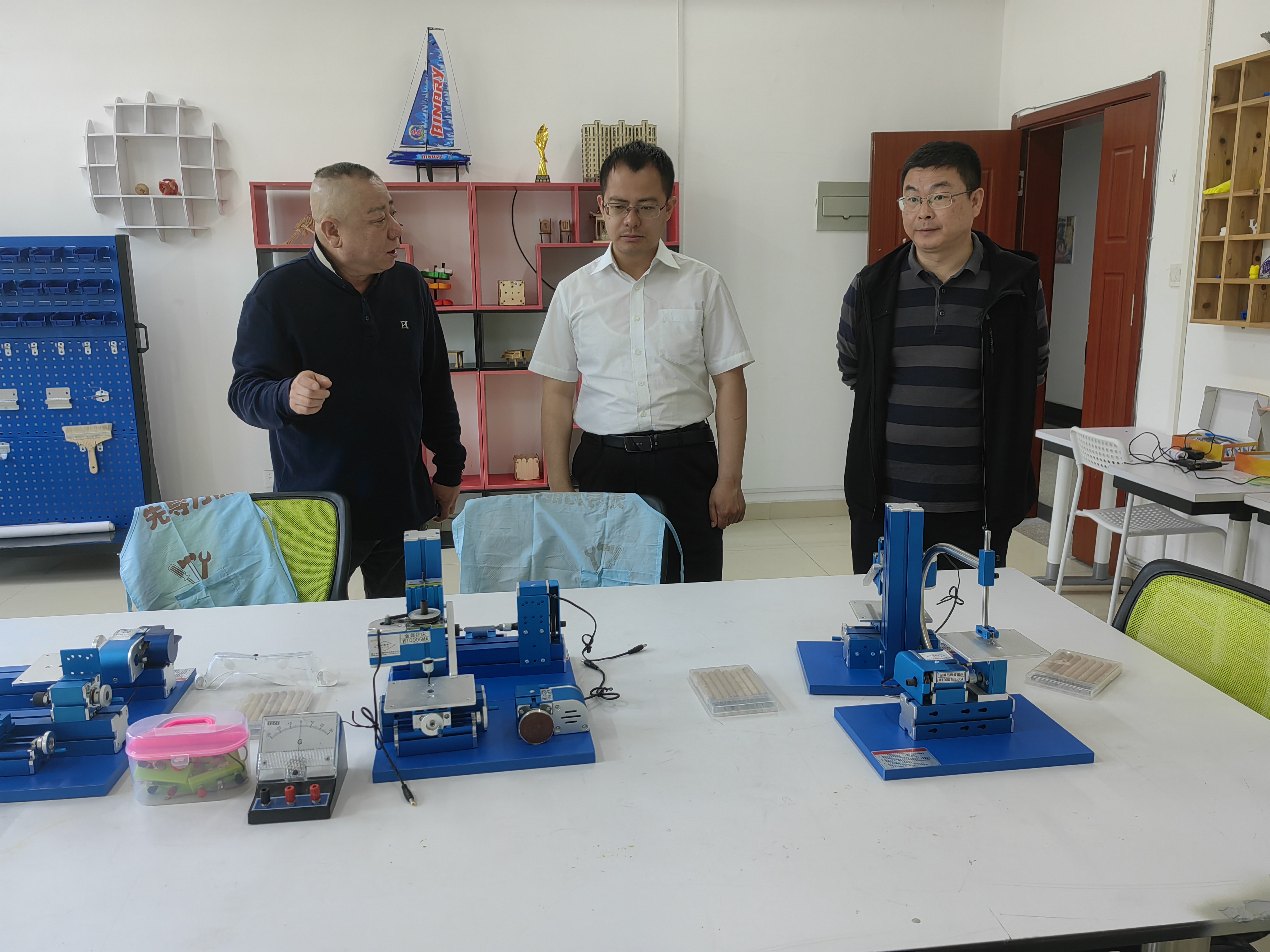 调研期间,与会人员围绕着课程建设、机构设置、竞赛组织等方便进行深入讨论和交流,一同参观了学校三创中心“无人机”、“数字AR”和“文创中心”等多个工坊。