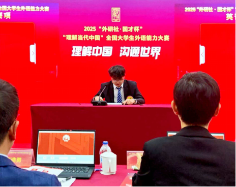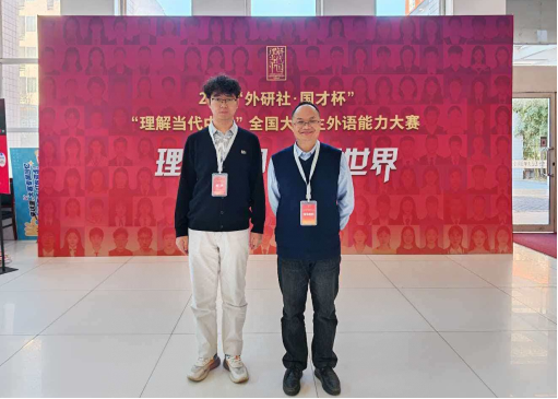 2025年12月6日,“外研社·国才杯”“理解当代中国”全国大学生外语能力大赛口译赛项全国总决赛在北京大兴外研社大楼落下帷幕,伟德官网外国语学院24级翻译硕士徐佳昊同学凭借其扎实的双语转换能力与深厚的跨文化沟通素养,从全国顶尖选手中脱颖而出,冲进国赛50强,勇夺国赛银奖。另外,综合能力赛项英语234班的武采辰同学荣获国赛铜奖。