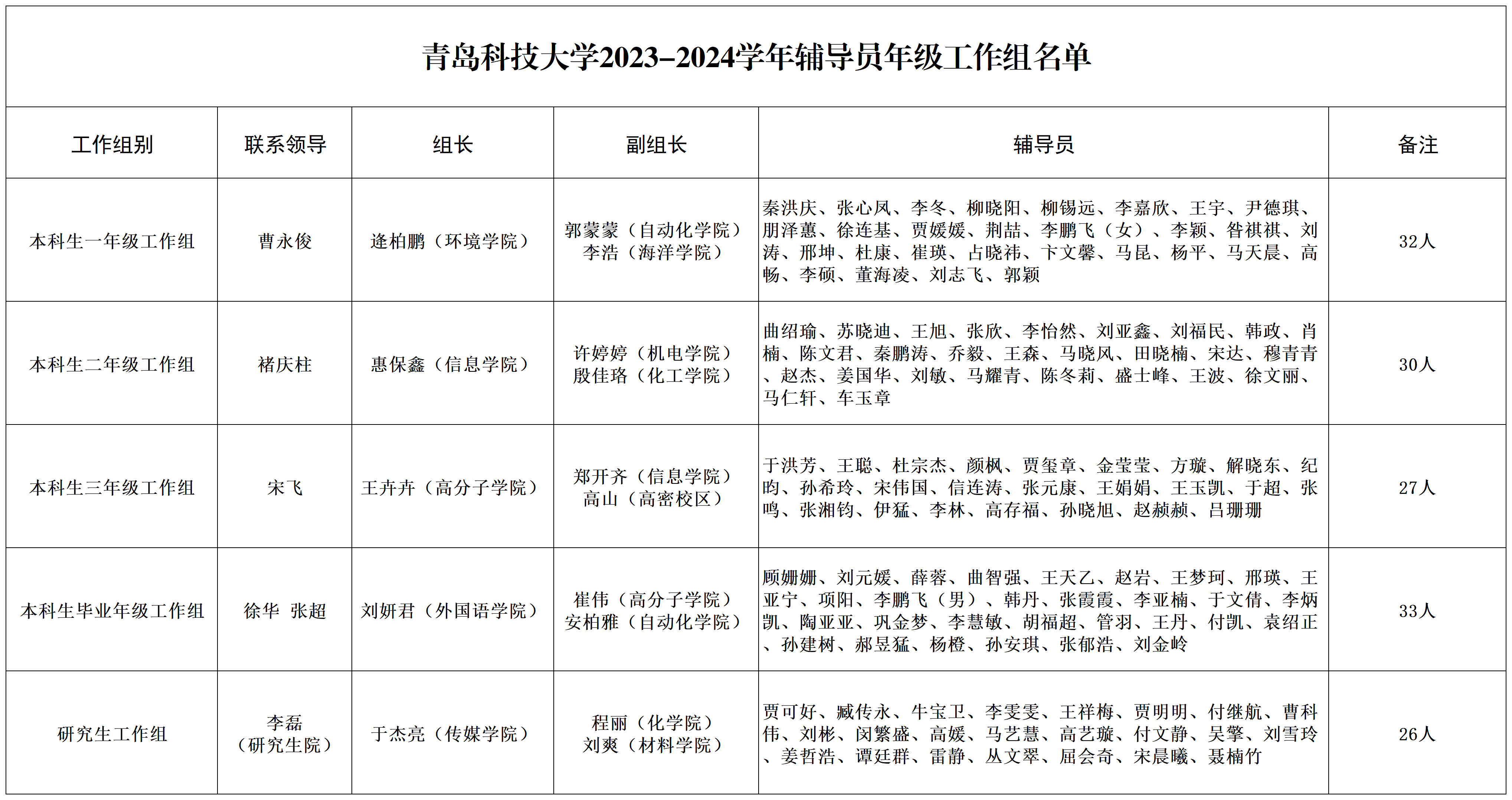 关于公布2023-2024学年辅导员年级工作组名单的通知