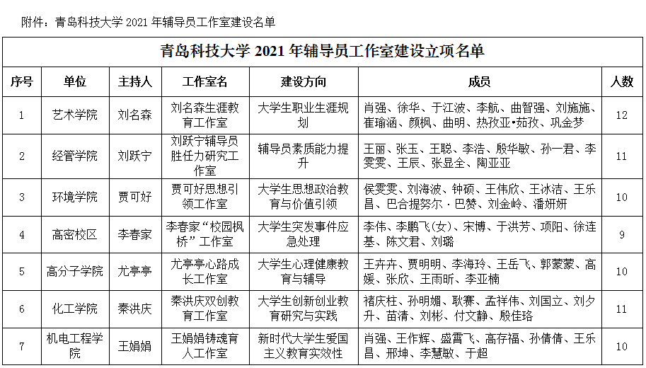 自《关于开展伟德国际1949官网辅导员工作室申报的通知》发布以来,各单位高度重视、精心准备、积极申报,共有来自19个学院、校区的31个辅导员团队提交了申报材料。经过单位推荐、学校评审和专题研讨,确定“刘名森生涯教育工作室”等7个工作室为伟德国际1949官网2021年立项建设的辅导员工作室,现将名单予以公布。