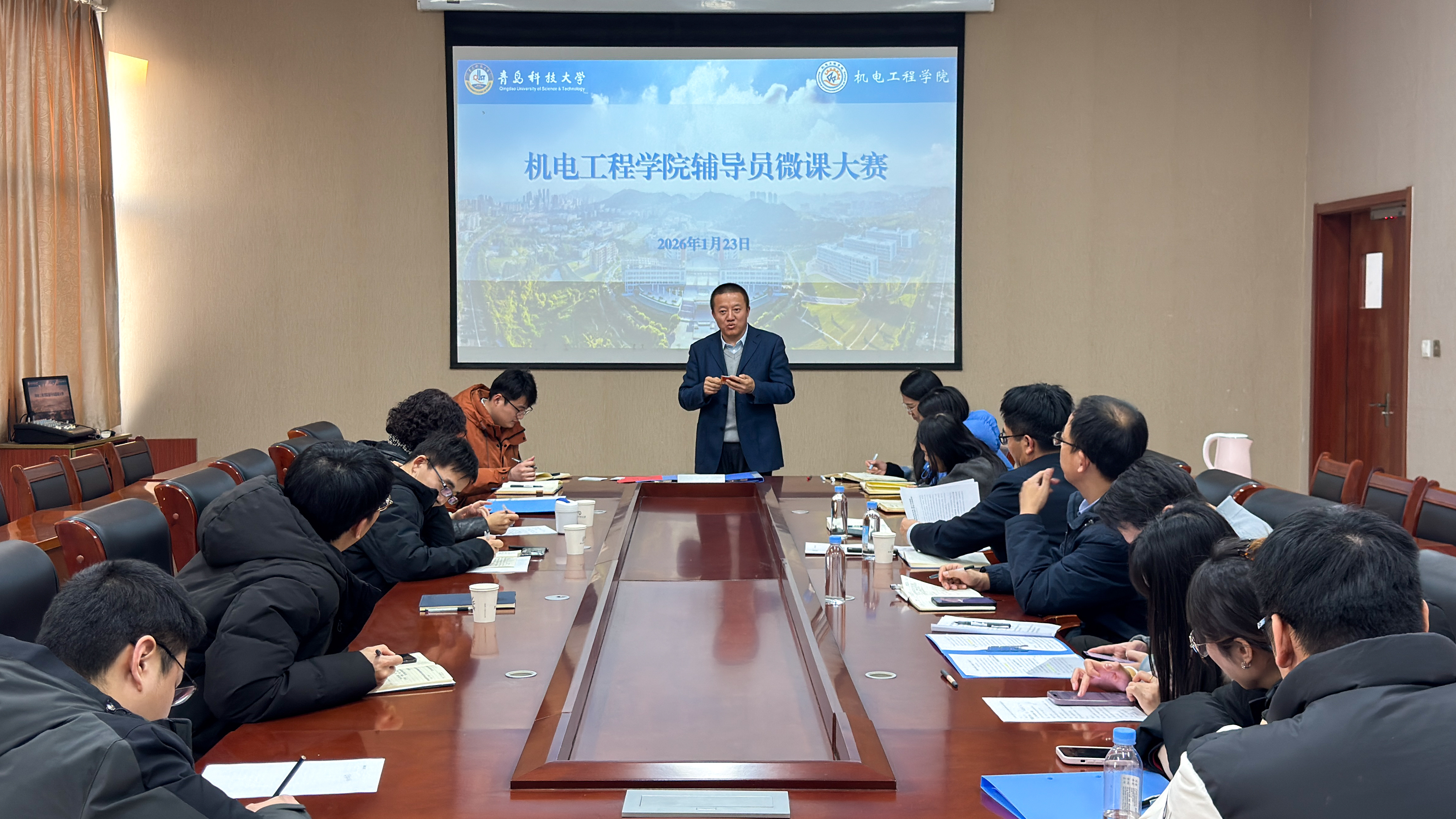1月21至25日,机电工程学院组织开展2026年第二次辅导员自主培训暨学院辅导员微课大赛。党委学生工作部副部长李春家、学院党委副书记杨小明、校十佳班主任、机自教研室主任赵海霞、辅导员发展中心主任孟祥伟受邀担任微课大赛评委,和全体辅导员进行了深入交流与指导。