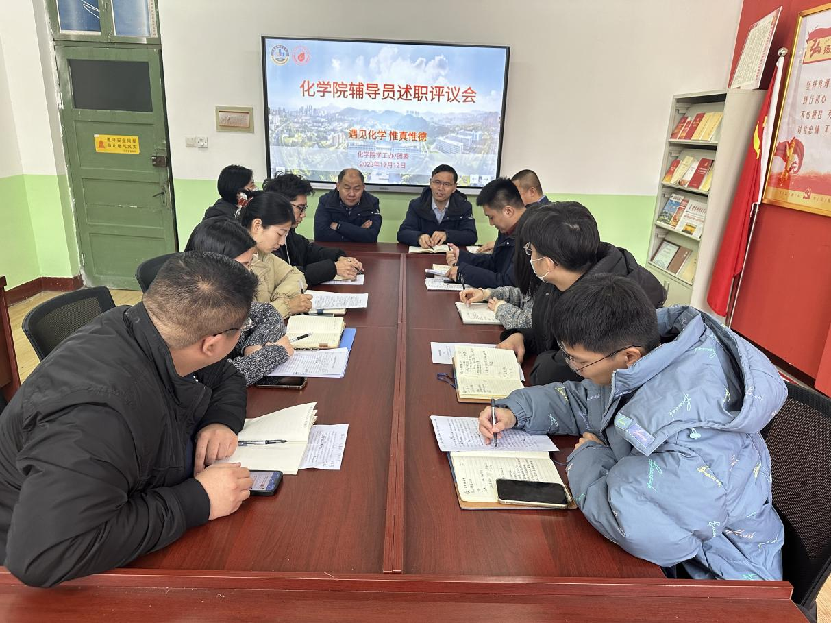 为进一步提高学院辅导员的思想政治素养和教育管理能力,建设一支“政治强、业务精、纪律严、作风正”的辅导员队伍,充分发挥辅导员考核的激励导向作用,按照学校考核要求,12月12日下午,化学院于党建活动室组织2023年度辅导员述职评议会。学院党政领导、教师代表出席会议,学工办全体辅导员参加会议。会议由化学院党委副书记兼副院长杨小明主持。
