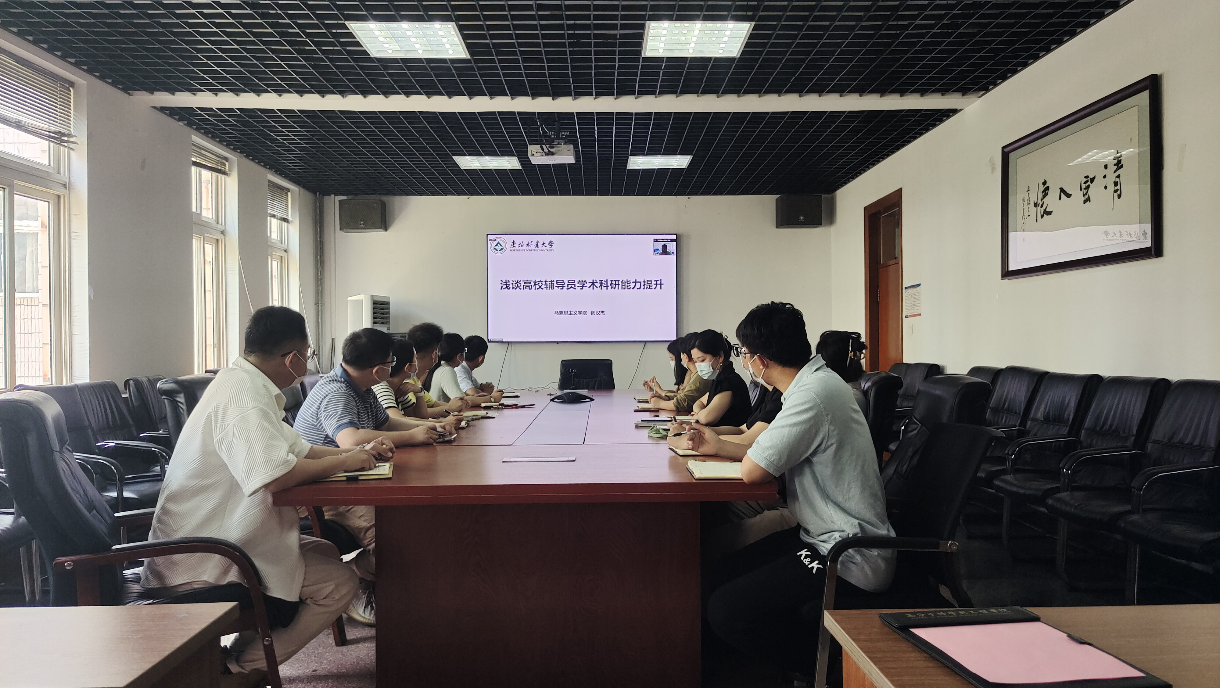 为加强辅导员队伍建设,推动辅导员的职业化、专业化发展,进一步提升辅导员的综合素不断强化有组织科研能力6月13日上午,高分子学院403会议室开展了“橡尚学工”辅导员强基培训一一辅导员科研能力提升培训会,邀请东北林业大学马克思主义学院周汉杰担任主讲,高分子学院党委副书记兼副院长尤亭亭主持,学院全体辅导员参加本次培训会