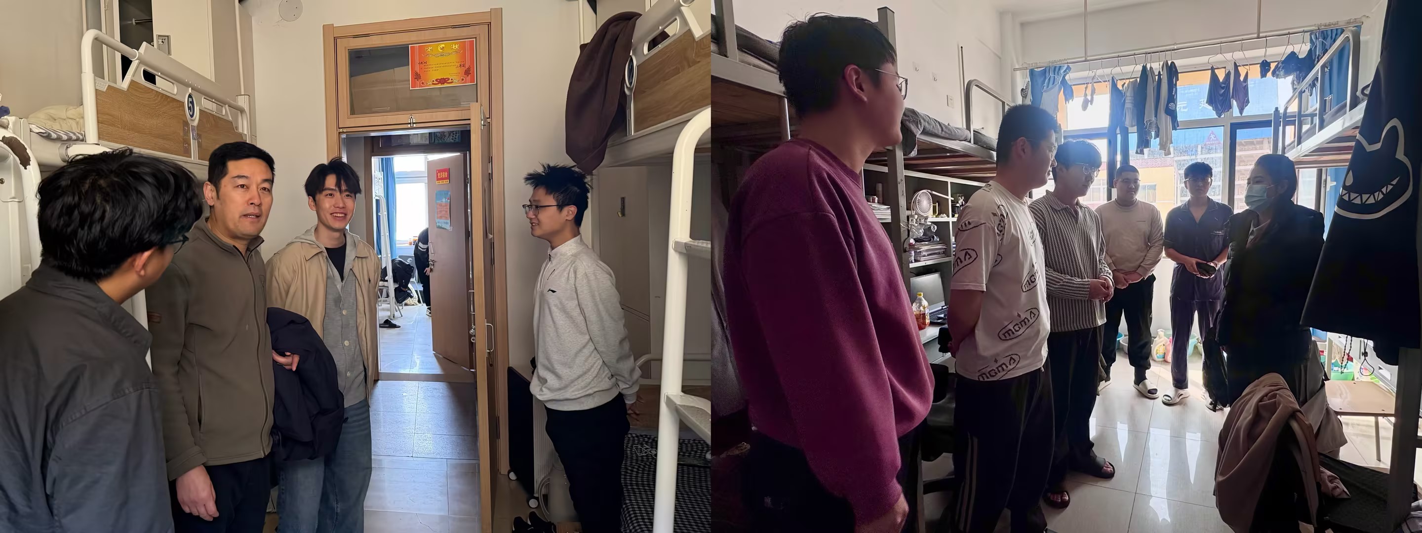上午,学院党委副书记兼副院长臧传永带队,深入学生宿舍,开展开学前走访慰问与安全排查工作。走访过程中,老师们与返校学生亲切交谈,详细询问学生的假期生活、返校行程、身体状况及新学期规划,耐心倾听学生在生活、学习中遇到的困难与诉求,逐一为学生答疑解惑,并叮嘱学生及时调整作息规律,快速适应校园生活,珍惜大学时光,勤奋学习、不负韶华。同时,辅导员们仔细检查宿舍卫生状况、用电安全、门窗设施等,重点排查违规电器、私拉乱接电线等安全隐患,对发现的问题现场提醒、督促整改,引导学生树立“安全第一”的理念,共同营造安全、整洁、和谐的住宿环境。
