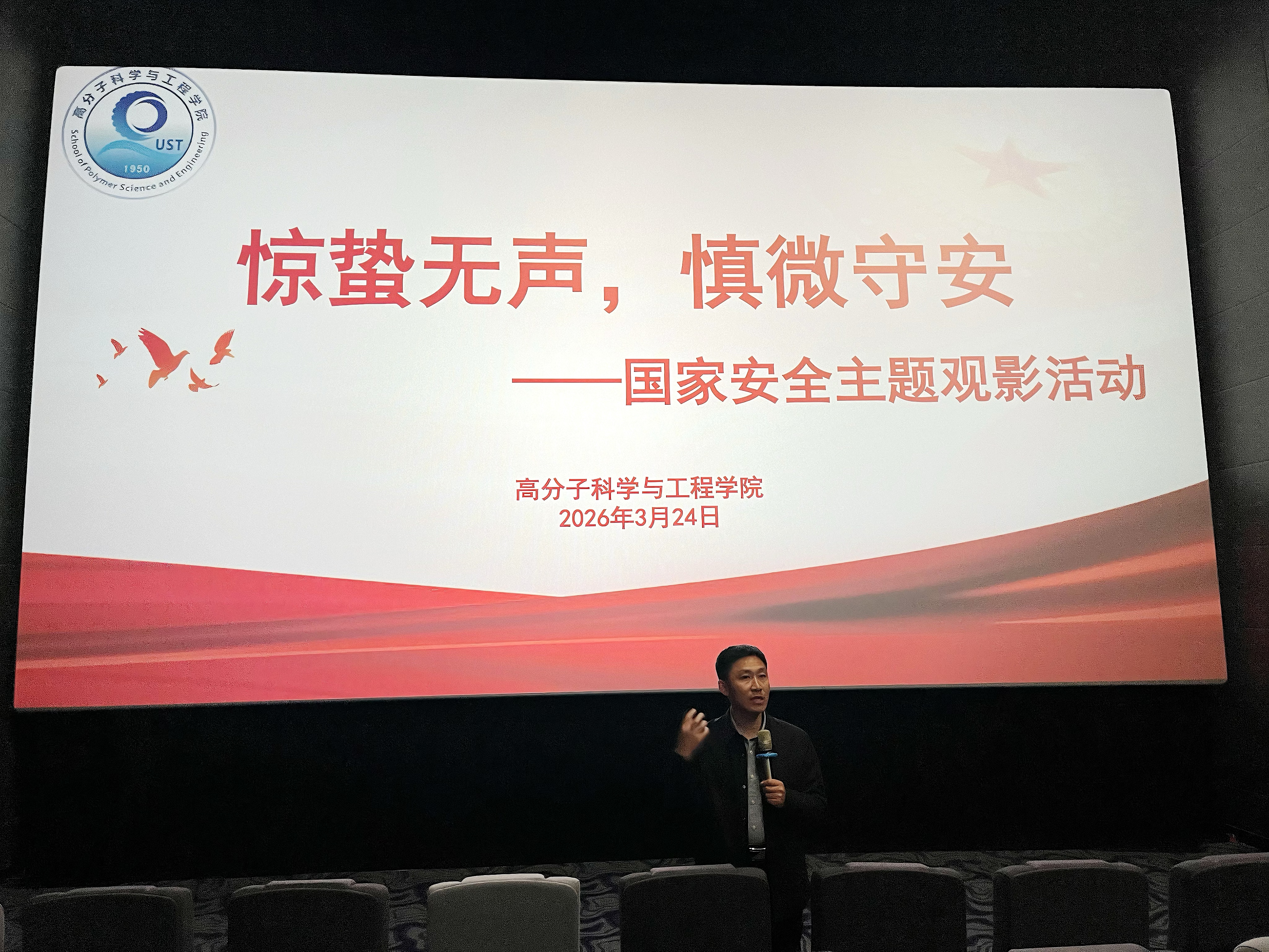 为深入贯彻落实总体国家安全观,进一步强化师生党员的政治意识和责任担当,3月24日,高分子学院党委组织开展“惊蛰无声·慎微守安”国家安全主题观影活动,集中观看影片《惊蛰无声》。学院党委副书记贾明明面向全体党员同学讲授专题党课。