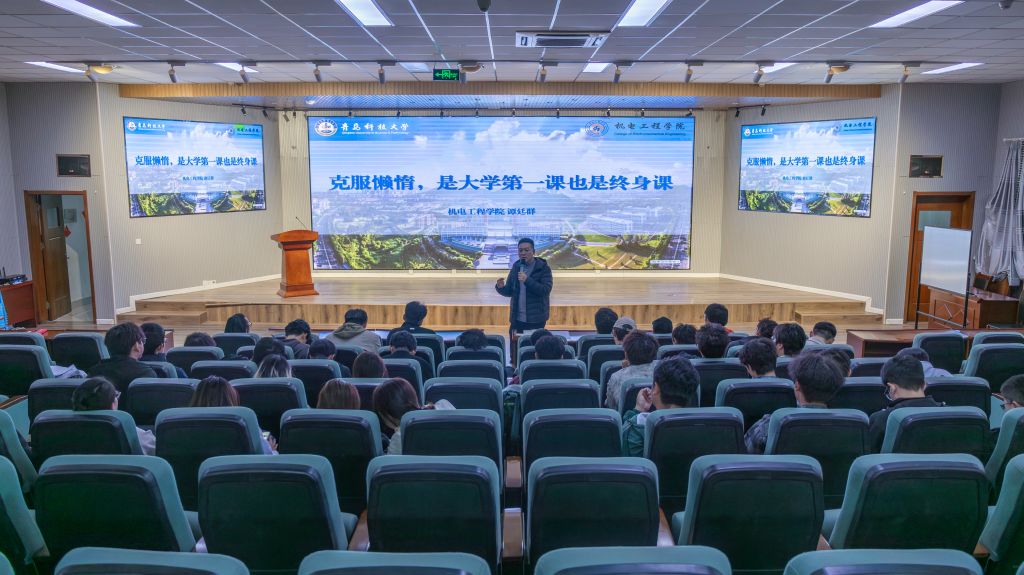 而后,辅导员谭廷群老师以“克服懒惰,是大学第一课也是终身课”为题,结合现场播放的励志教育视频,围绕大学生在学习、生活中常见的拖延与懈怠现象,深入剖析了“懒惰”背后的心理动因,并勉励同学们从当下做起,培养自律品格,将克服惰性贯穿大学学习与人生成长的始终。
