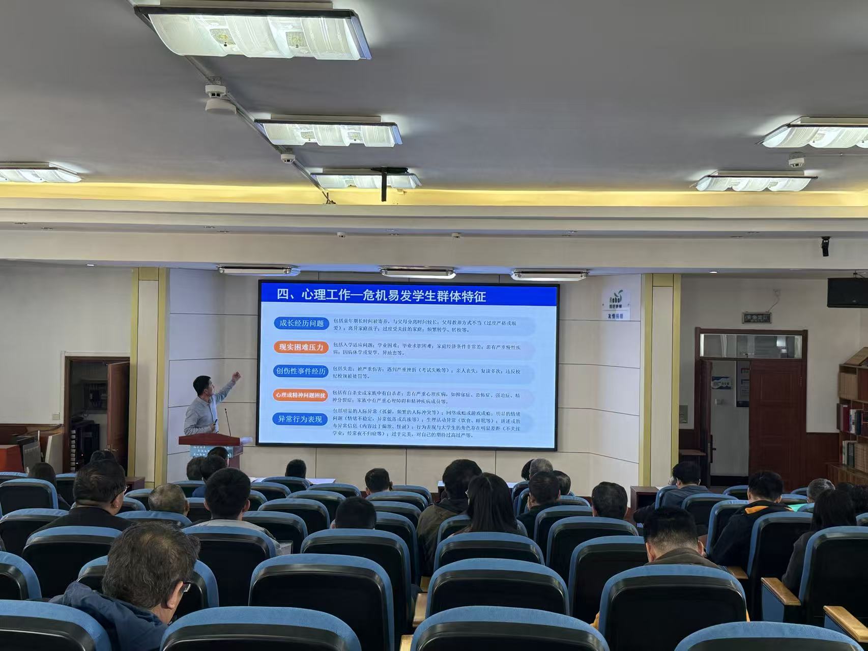 培训深入剖析心理危机易发学生群体特征,涵盖成长经历、现实压力、创伤事件、心理困扰及异常行为等多维度,为班主任(导师)日常识别与关注提供清晰指引。
