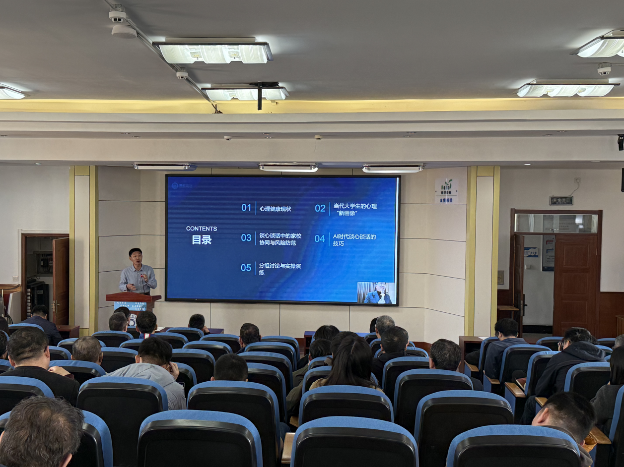 会上,贾明明详细介绍了学院心理健康工作概况,分析了本、研学生心理危机具体情况,强调班主任(导师)在大学生心理健康教育中的关键作用。他指出,社会的多元化导致学生心理问题愈发复杂多样,对班主任(导师)工作提出新挑战与要求,需不断提升心理危机识别及应对能力。