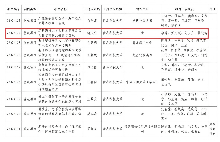 2024年山东省本科教学改革研究重点项目:工科高校大学生科技竞赛活动项目培育模式研究与实践
