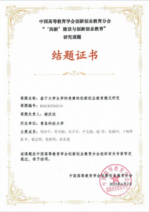 中国高等教育学会创新创业教育分会“‘四新’建设与创新创业教育研究”课题:基于大学生学科竞赛的创新创业教育模式研究