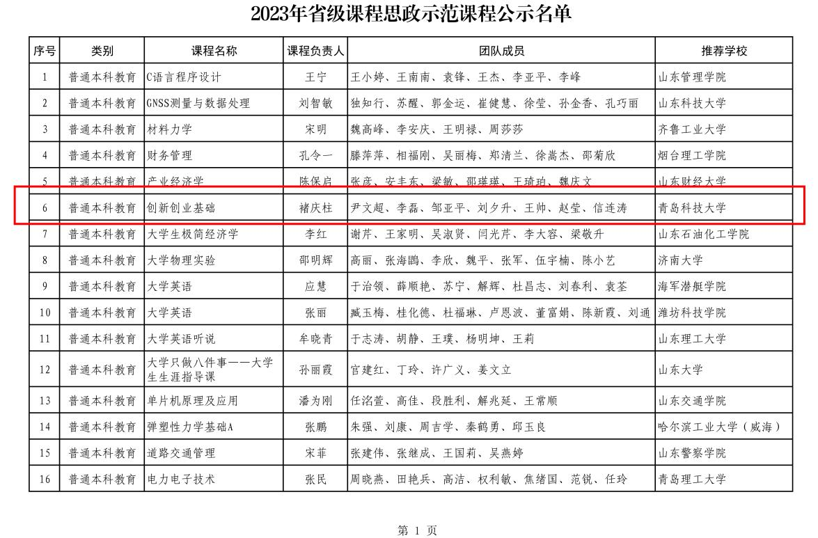 省级课程思政示范课程:创新创业基础