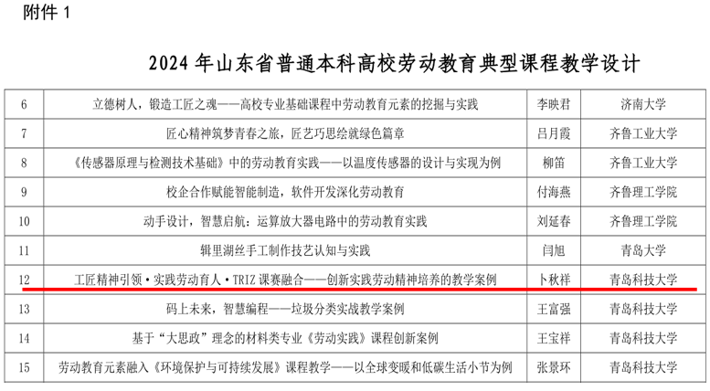 2024山东省普通本科高校劳动教育典型教学设计:工匠精神引领·实践劳动育人·TRIZ课赛融合——创新实践劳动精神培养的教学案例