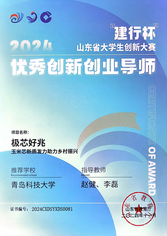 “建行杯”2024山东省大学生创新大赛优秀创新创业导师