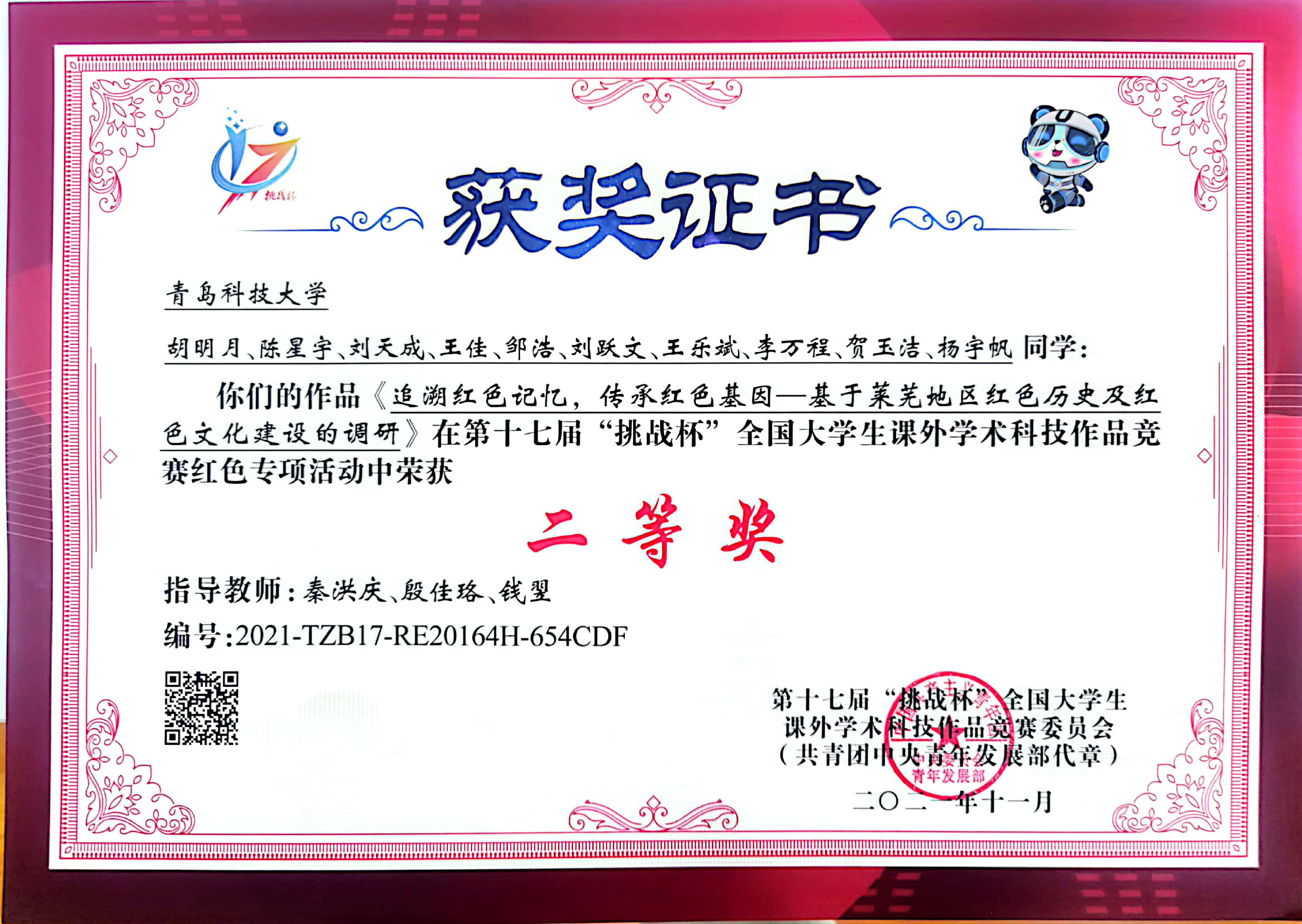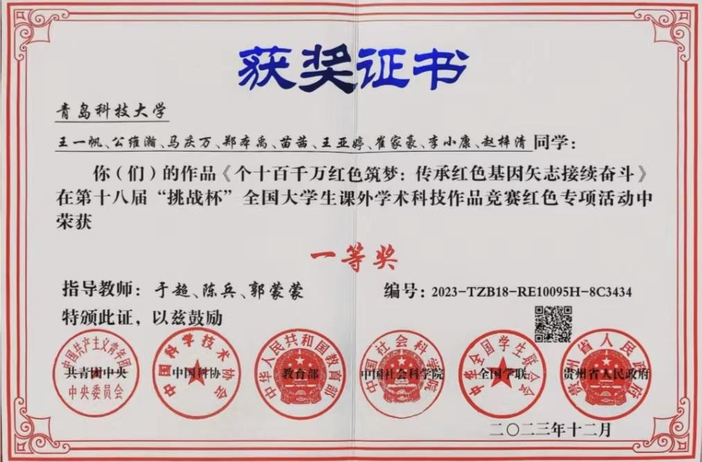 2021-2024“挑战杯”全国大学生课外学术科技作品竞赛国家级一等奖1项、二等奖4项、三等奖2项